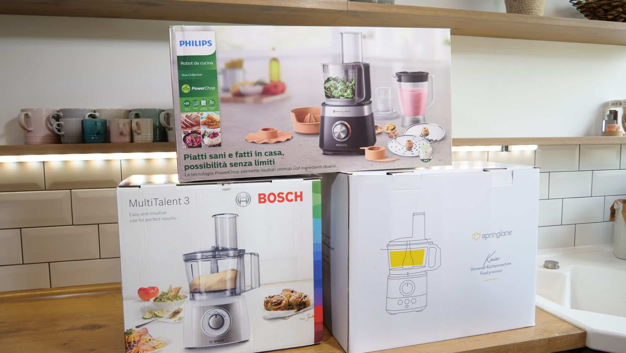 Insgesamt haben uns alle drei Küchenmaschinen sehr gut gefallen. Bei der Springlane gefallen uns die Geschwindigkeitsregulierung und der hochwertige Standmixer-Aufsatz aus Glas. Die Küchenmaschine von Bosch ist kompakt und bietet trotzdem ausreichend Leistung für alle Aufgaben, die wir ihr gestellt haben. Die Philips-Küchenmaschine lässt sich sehr gut verstauen und spart viel Platz im Schrank. Sie bietet vielseitige Anwendungsmöglichkeiten und wurde als einzige mit einem Aufsatz für eine Saftpresse geliefert.